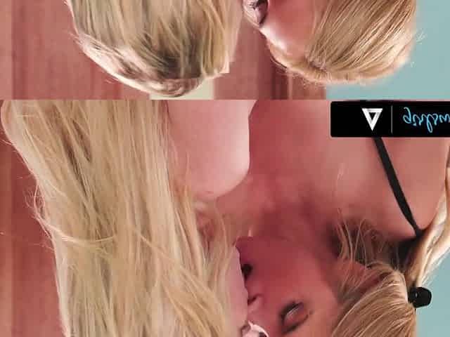 Duo of slim horny blondies give steamy cunnilingus to each other in 69 pose