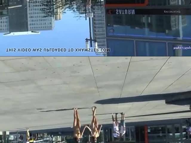 Two girls walk naked on a city street