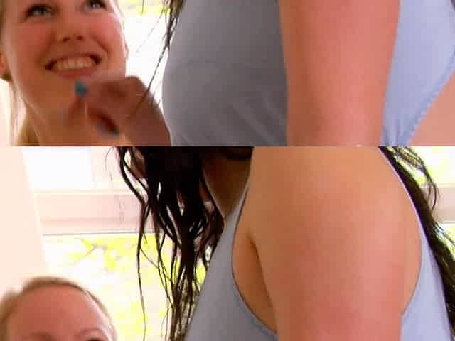 Blonde and brunette lesbian girls licking and toying