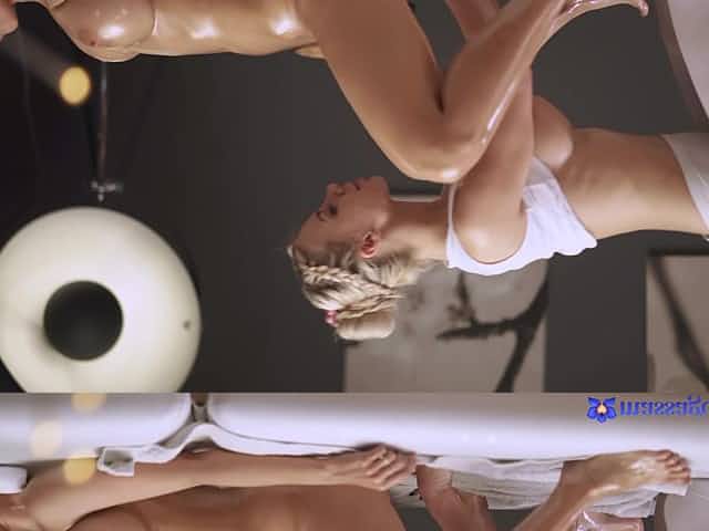 Gorgeous big breasted brunette lesbians eat pussies in massage parlor