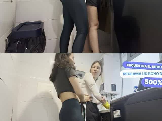 2 lesbos have a secret in the laundry room.