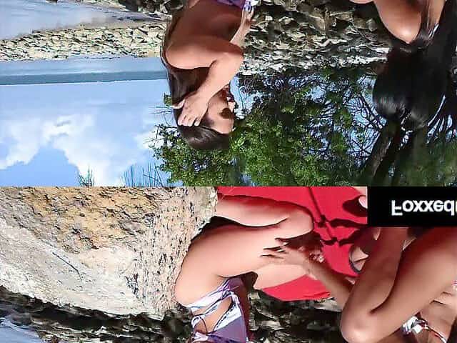 Lesbian Bikini Squirters - Perky tits PAWG Abella Danger, Payton Preslee licking pussy outdoors by the pool