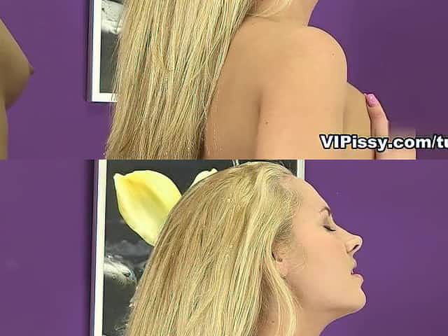 Erotic lesbo sweeties get covered with piss and splatter wet pussies
