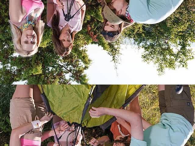 Curvy lesbians seduced handsome hiker to pound wet pussies