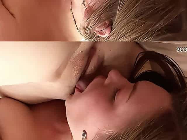 Exciting lesbian girls kiss and lick their slits