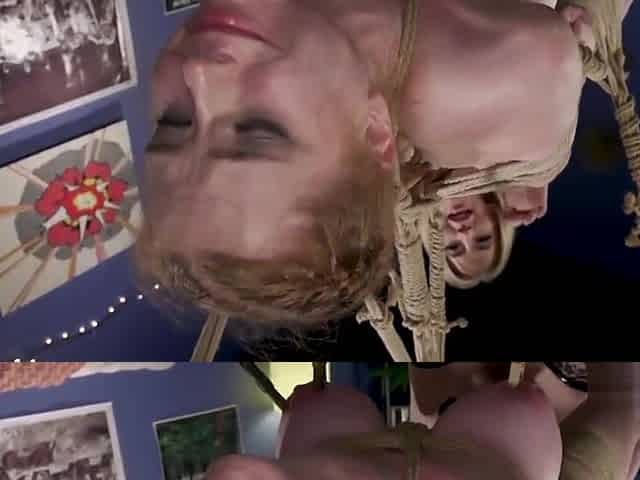 Redhead slave Emily suspended with ropes drilled with strap on by her mistress