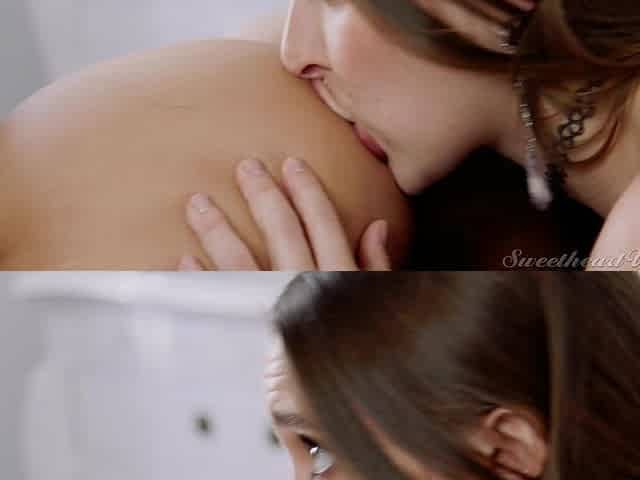 Naked: perky tits brunettes Gia & Sabina Rouge kissing, petting and licking