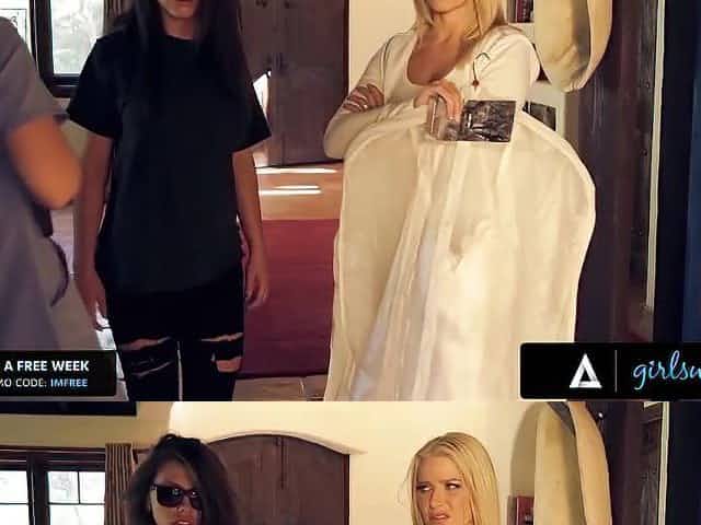 Naughty blonde busty lesbos AJ Applegate and LunaStar deep pussy licking and nasty lesbo squirt