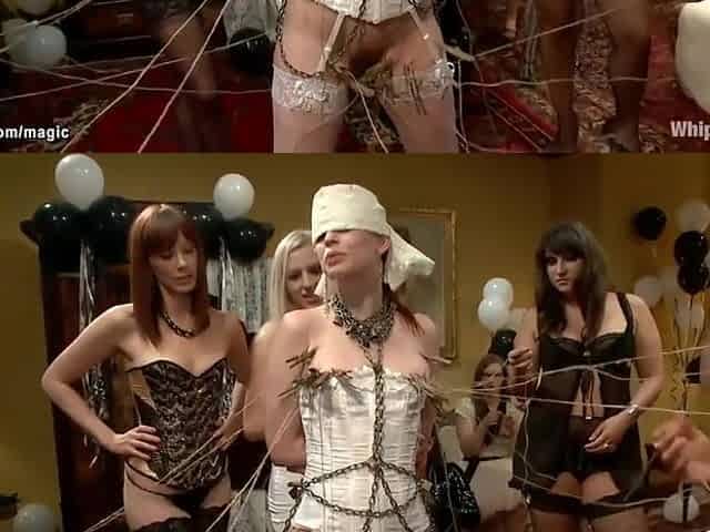 Blindfolded Lesbian Group Whipped