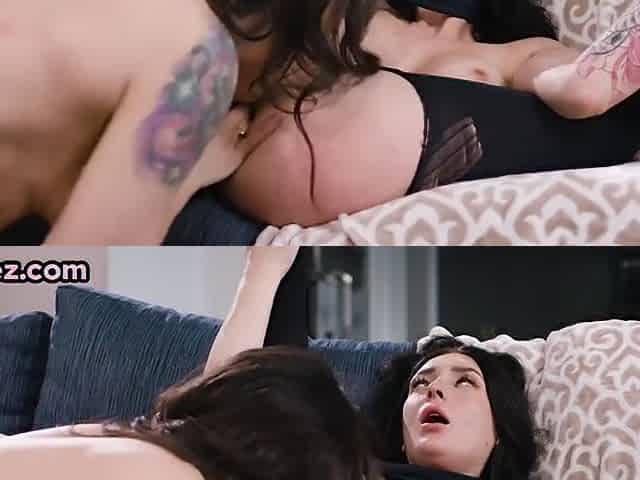 Inked Lesbo babe strapon by her lover