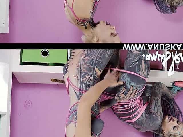 Tattoo Cutie hotty belt- on vagina anal bang s&m kink fetish squirt enjoyment