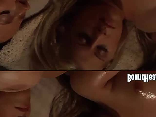 Luscious blond slut gets anal fucked in reverse cowgirl style in FFM sex scene