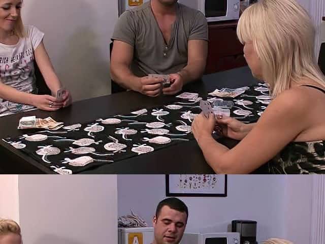 Strip-poker leads to mom-teen dildo fucking