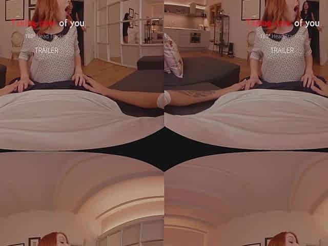 Lesbea Czech redhead Kaira Love VR lesbian MILF pussy licking orgasms with hot blonde Emily Bright