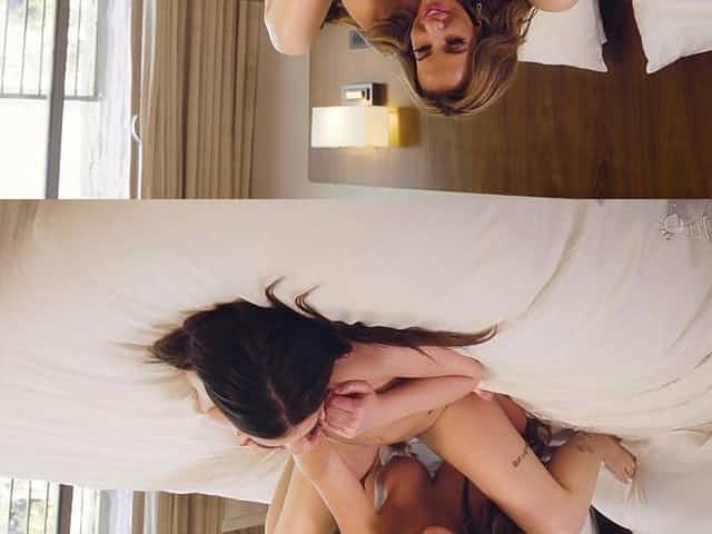 Sweet lesbian love making on the bed - Tiffany Tyler and Ash Hollywood