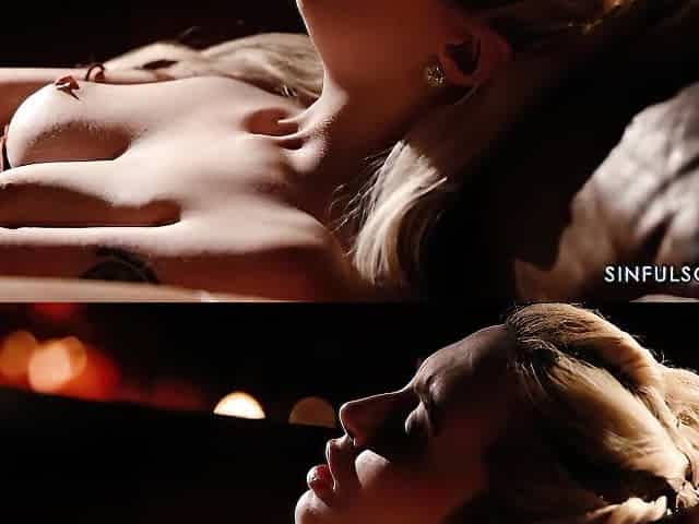 Blonde bombshell Lexi Lore teases in fishnet panties and pussy play