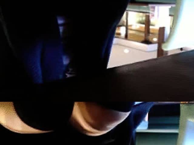 Sexy busty tit babe in stockings bates in public library