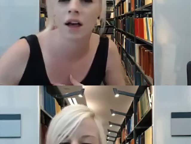 Sneaky blonde fucks in library