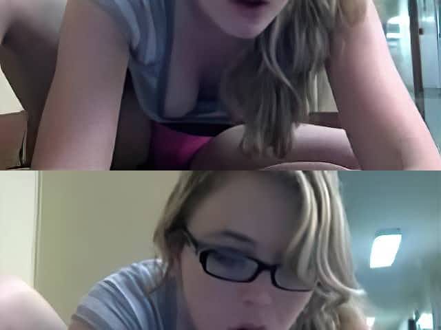 Cute Blonde Girl Flashes Nude in a Public Library