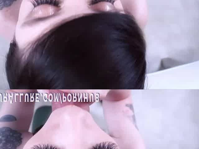 Tattooed Brunette Girlfriend Licks and Sucks Balls