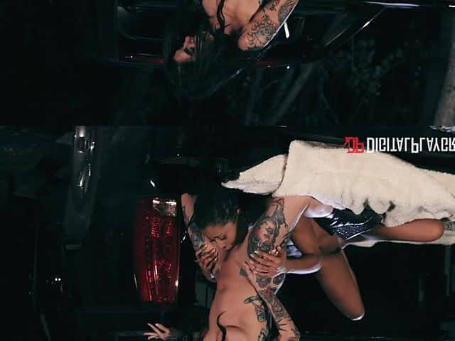 Katana Kombat rubs clit when riding Peter Green in wood