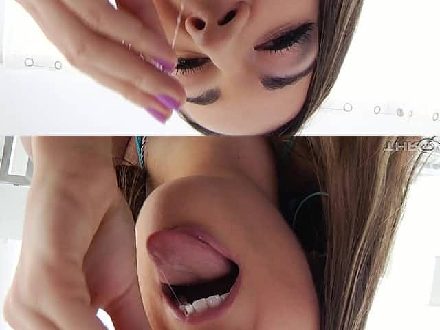 Close up POV deepthroat blowjob with Lily Adams gagging like a whore