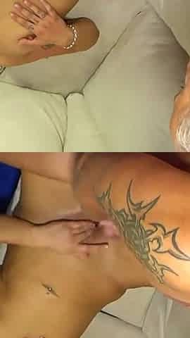 Amateur Tattooed MILF Fucked Doggy Style and Cum on Tits by Small Limp Cock