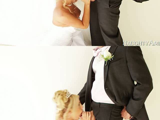 Horny bride Tasha Reign gives deepthroat blowjob at her wedding day