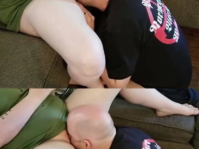 A bored housewife is getting her wet pussy lips licked on the sofa
