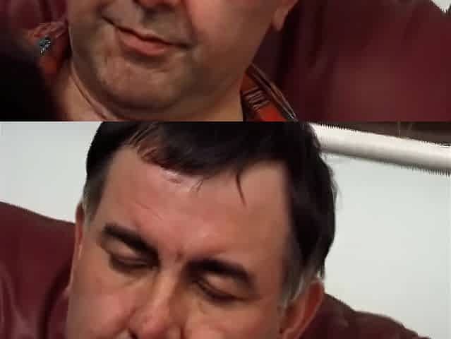 Surprise Oral Cumshot and Swallow Brunette Wife Blindfolded with Red Lipstick
