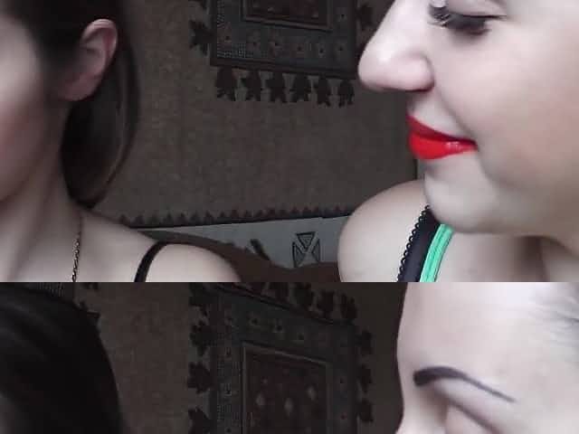 Double blowjob from girls in lipstick