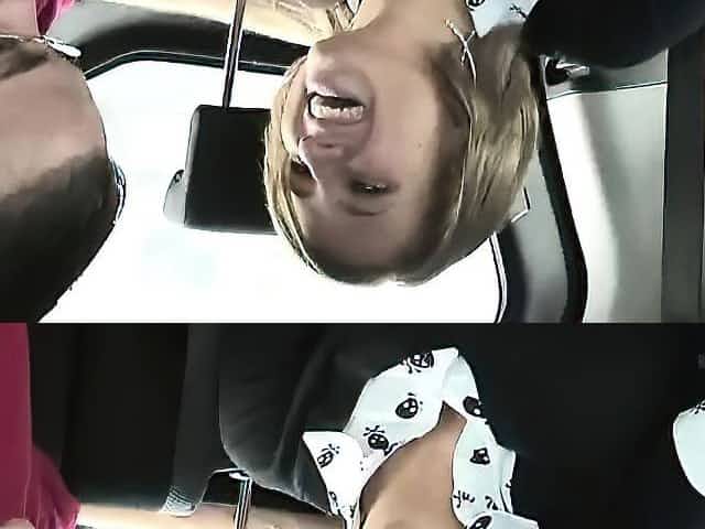 Little blonde checks out the screen to watch them fuck and