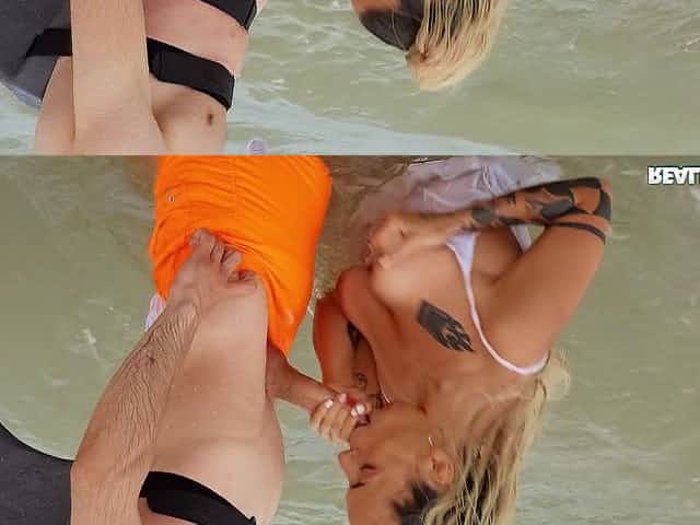 Lola Emme is sucking Jordi's cock in the ocean
