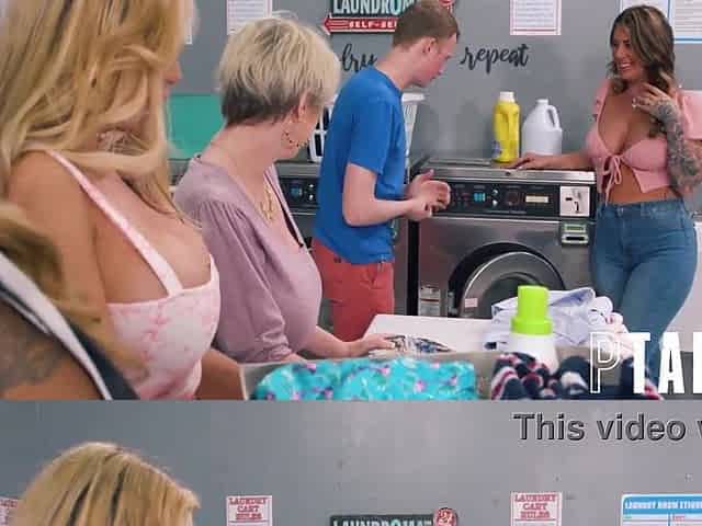 5 MILFS Gang Up On A Teen At Laundromat - Dee Williams, Lolly Dames, Caitlin Bell