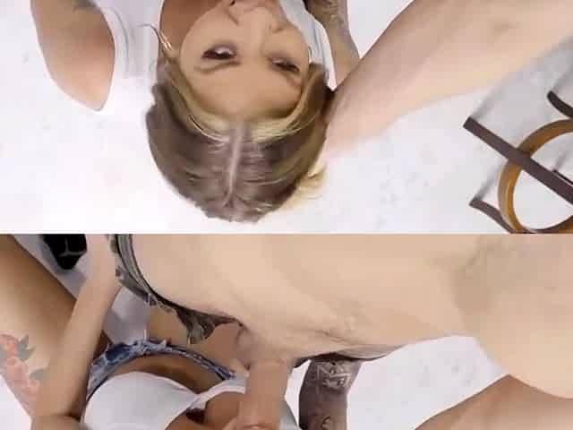 Blonde with big boobs Lolly Dames gives a stunning deepthroat