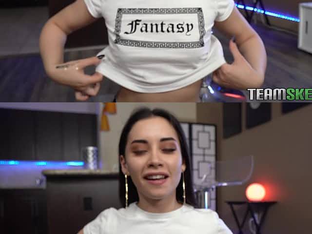 Naughty teen brunette with amazing natural tits shows ass and tits on webcam for fans