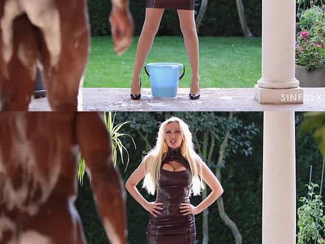 Blonde chick Amber Jayne craves for a long black cock in her pussy