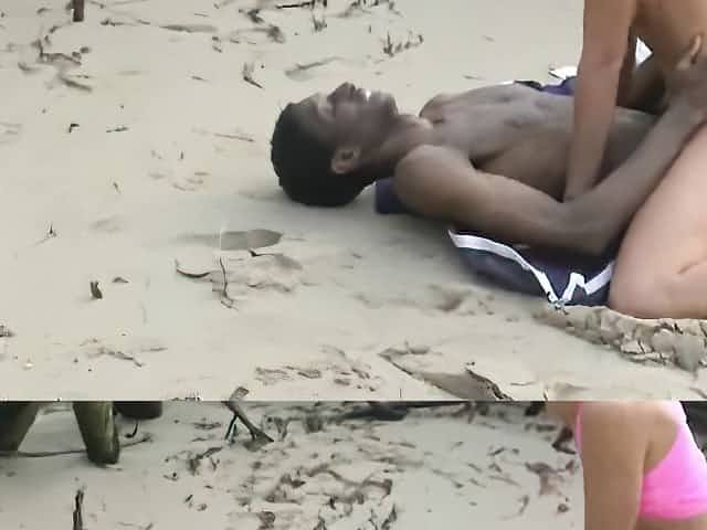 Amateur blonde lady found a young African stud with a very long cock for sex