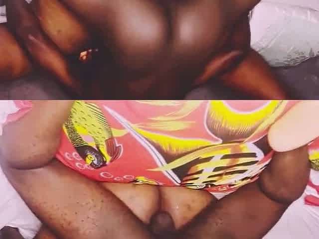 Horny ebony girl fucks two big African dicks