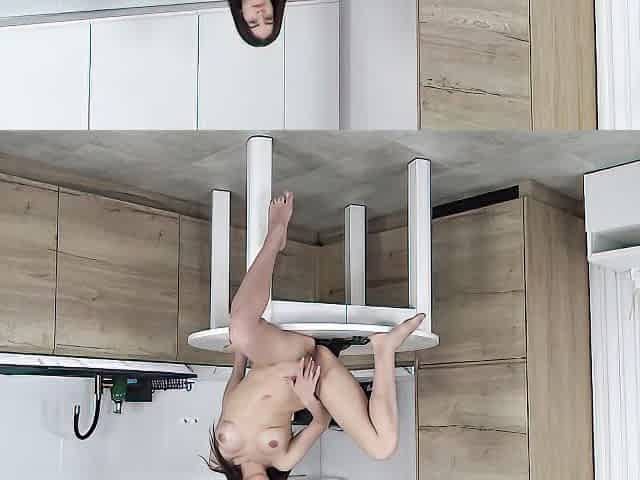 Solo brunette Asian chick Lina Lee masturbates in the bathroom in VR.