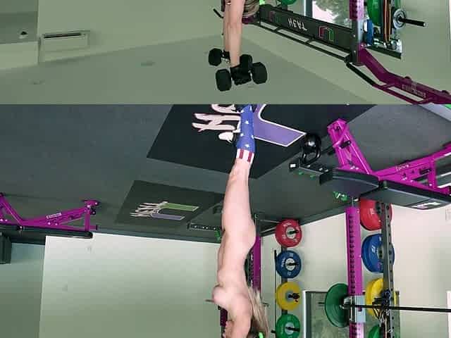 Big tits bouncing while working out in the gym