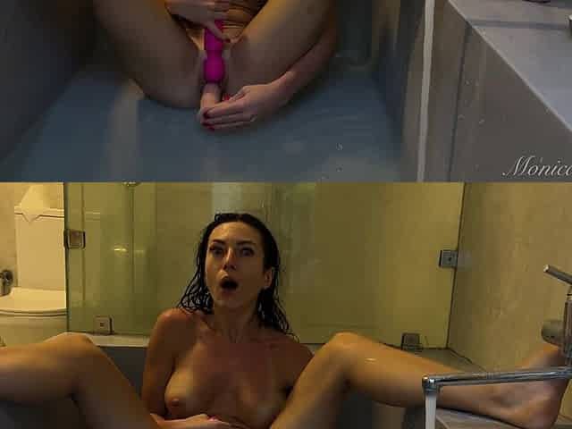 Bathing Naked, Soapy, Masturbation with a Dildo, Orgasm