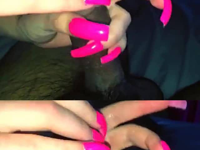 Handjob with long pink nails