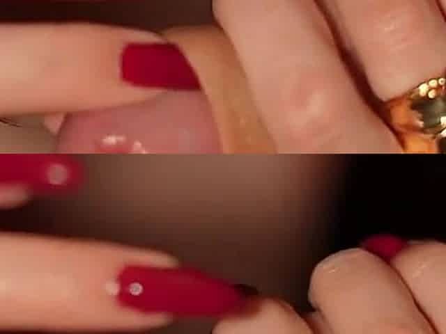 Handjob and Foreskin Play with Long Red Nails and Rings