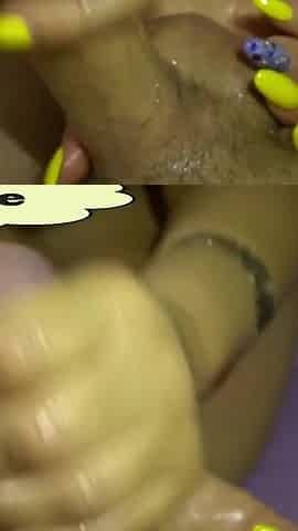 Long nails oiled handjob from stepmom