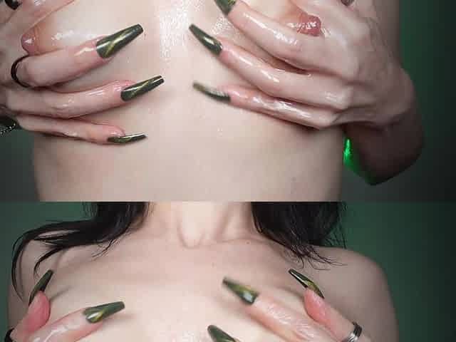 Oiled Small Tits and Green Long Nails
