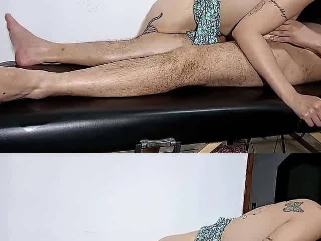 He Managed To Take Off The Masseuses Clothes And Convince Her To Give Him A Blowjob And Sit On Him