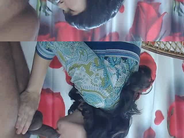 Curvy brunette gets a blowjob from her loving boyfriend