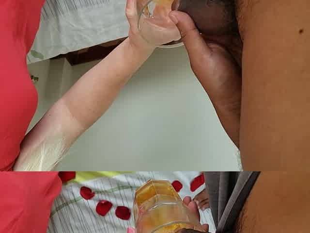 Loving Girl Dressed in Red Swallows My Pee in a Glass