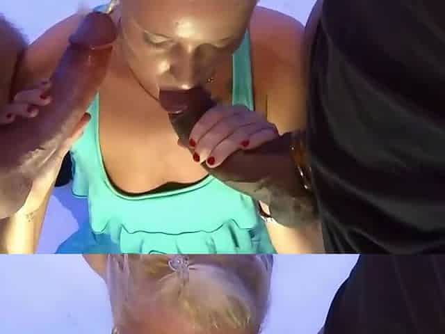 Shaved blonde lucie gets pussy and mouth fuck